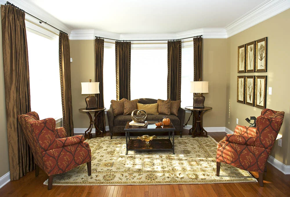 This family had purchased their dream home several years before and now it was time to create an environment they would both love; the battle of the neutrals vs. colors! Our full service transformation needed to take place in their living, dining, and family rooms; plus the master suite. With wide open spaces, we filled the walls with bold warm neutrals, with just a hint of underlying color. The colors were able to shine in the next layers - fabric, walls and windows. Since this initial project, the kitchen, office and a young daughter's room have been redesigned.